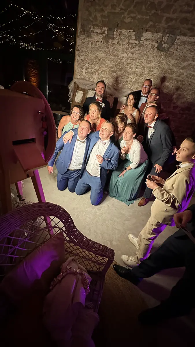 Une animation ludique et conviviale : vos invités, petits et grands, se prennent en photo avec accessoires, déguisements ou cadres personnalisés, créant des souvenirs amusants et spontanés.